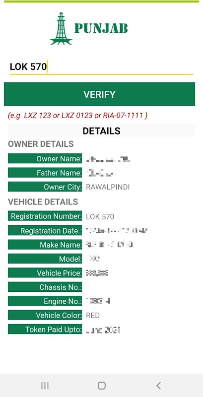 Fast Vehicle Verification need is getting essential now a days, also you can check details of your own vehicle in Pakistan region mentioned below by using Fast Vehicle Verification app