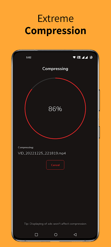 Notre application fournit des résultats impressionnants. Il peut compresser un fichier vidéo de 500 Mo à moins de 50 Mo tout en conservant une qualité vidéo raisonnable. Vous pouvez même convertir des Go en Mo rapidement et efficacement. Soyez agréablement surpris par la qualité du rendu.
