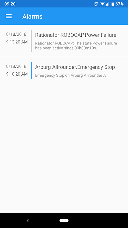 En cas d'inactivité, l'utilisateur en sera informé via une notification push par l'application. La source, l'heure ainsi que la raison du temps d'indisponibilité seront transmises avec des informations facultatives en texte libre. Ainsi, l'opérateur de la machine ou le responsable de la production en sera informé et pourra intervenir à un stade précoce, même s'il ne se trouve pas à proximité de la machine.