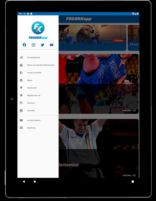 La nouvelle application FederKApp représente un outil utile pour les amateurs de sports de combat, mais surtout pour tous les clubs et membres, pour être toujours informés de ce qui se passe dans le monde fédéral. Des fonctions spécifiques ont été fournies telles que la recherche d'associations sportives, la carte numérique et programme sportif. La nouvelle APP est aussi une chaîne d'information avec des nouvelles en temps réel et des zones d'informations approfondies. Une APP qui ne peut pas manquer sur le smartphone d'un passionné.