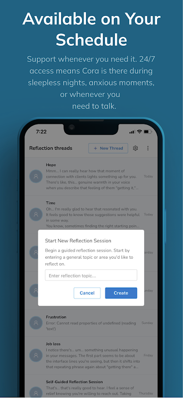 * Engagez une conversation : Discutez avec Cora, votre IA, de tout ce qui vous préoccupe.