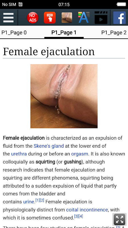 Female ejaculation is characterized as an expulsion of fluid from the Skene's gland at the lower end of the urethra during or before an orgasm. It is also known colloquially as squirting (or gushing), although research indicates that female ejaculation and squirting are different phenomena, squirting being attributed to a sudden expulsion of liquid that partly comes from the bladder and contains urine. Female ejaculation is physiologically distinct from coital incontinence, with which it is sometimes confused .