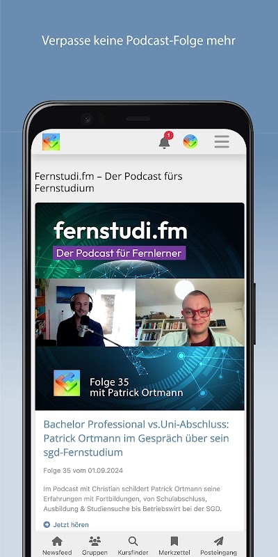 L'application d'enseignement à distance est votre compagnon quotidien pour les études à temps partiel et la formation continue. Avec l'application d'enseignement à distance, vous pouvez