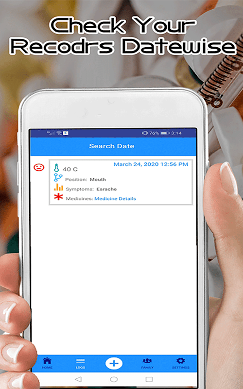 Vous pouvez suivre la température de plusieurs personnes séparément grâce à cette application; Enregistrez la température avec le temps, la position du test, les symptômes, les médicaments pris et tout autre texte de note; Vérifiez la tendance de la température par graphique par jour, semaine, mois ou plage de dates personnalisée; De cette façon, vous pouvez apporter votre courbe de fièvre avec vous chez le médecin ou même l'envoyer par e-mail au format PDF, CSV ou HTML. Le PDF, CSV ou HTML contient toutes les mesures, médicaments et notes, ainsi qu'un graphique pleine page montrant la courbe de température.