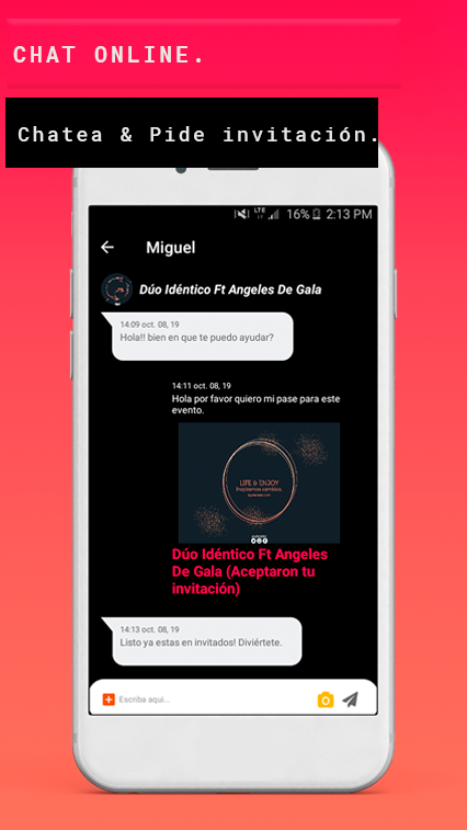Descubre Eventos. Pide invitaciones. Asiste. Usar Fever es fácil: simplemente navega en el mapa de discotecas, usa los filtros del mapa para encontrar las discotecas de todo el Perú, para ver su información o dar un feedback realizando un comentario o calificando con un nivel de estrellas, también navega por el listado de eventos, usa los filtros para encontrar lo que buscas, además selecciona uno para ver su información disponible y para poder chatear con los promotores y solicitar una invitación mediante el chat. Cuando el promotor te da la invitación, ¡ya estas en la lista de invitados!. Sin otros medios. Sin estrés. Solo tienes que seleccionar los eventos que te interesan, chatear online con los promotores, dejar el móvil a un lado para luego asistir y crear nuevas experiencias conociendo nuevas personas y divirtiéndote.