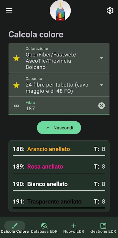 CALCUL INVERSE: combien de fois avez-vous eu une fibre dans la main sans pouvoir savoir de quel tube elle provient ? La fonction de calcul inverse vous permet de découvrir la numérotation possible de la couleur de fibre dont vous avez besoin. Par exemple, dans un câble 48 FO d'OpenFiber, la fibre rouge peut être 1, 13, 25 ou 37.