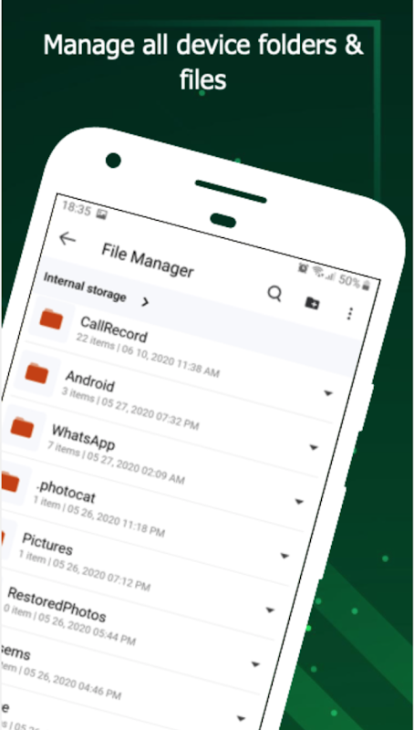 File Manager & File Explorer est une application de gestion de fichiers puissante avec une interface claire et intuitive. Avec cette application de gestion de fichiers, vous pouvez rapidement parcourir et gérer les fichiers sur votre appareil mobile, le Gestionnaire de fichiers reconnaît également plusieurs formats de fichiers, y compris la musique, les vidéos, les images, les documents, les APK et les fichiers zip.