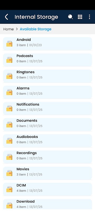 Téléchargez Gestionnaire de fichiers : Explorateur de fichiers et prenez le contrôle total du stockage de votre appareil grâce à notre gestionnaire de fichiers puissant et facile à utiliser. Que vous organisiez des documents, déplaciez des fichiers ou exploriez votre stockage interne, notre application rend la gestion de vos fichiers rapide, sécurisée et intuitive.