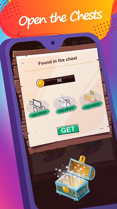 Vous recevrez des bonus pour chaque niveau terminé. Ouvrez les coffres avec des objets et améliorez l'intérieur de votre maison.