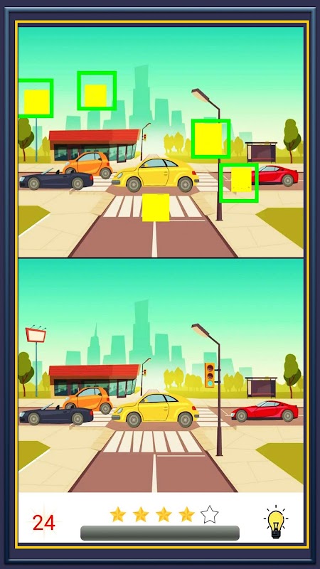 Trouvez 5 différences entre deux images similaires et appuyez sur les points pour les marquer. Vous pouvez utiliser un indice pour voir où il y a une différence dans les images.