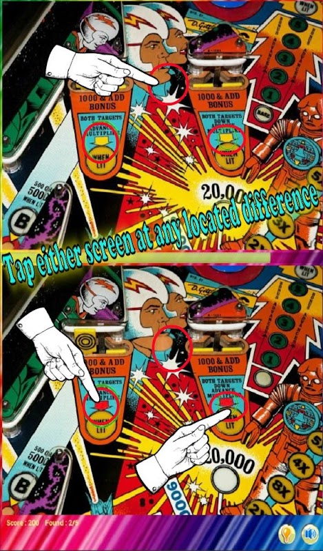 Trouver les différences entre deux images de Pinball, repérer les différents objets cachés