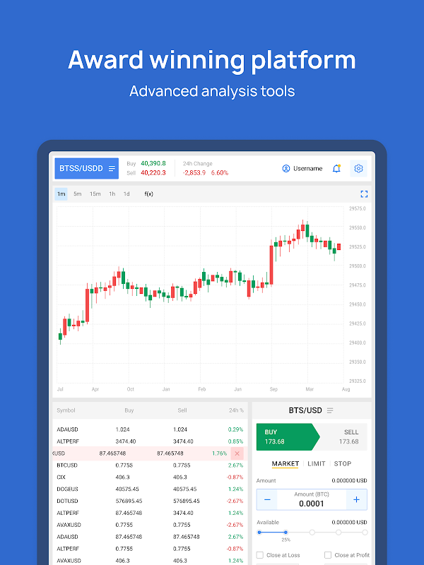 Finteria est une nouvelle application de plateforme de trading, conçue pour donner aux traders novices et expérimentés une suite complète de fonctionnalités. Alliant harmonieusement simplicité et fonctionnalité, notre application offre une interface intuitive qui permet aux utilisateurs d'explorer et de capitaliser sur divers types d'actifs. Plongez dans un monde d'informations sur le marché avec nos graphiques puissants, fournissant des données en temps réel pour une prise de décision éclairée. Bénéficiez d'un avantage concurrentiel grâce à une large gamme d'indicateurs techniques, vous permettant d'identifier les tendances et de faire des choix commerciaux éclairés. Libérez votre créativité et personnalisez vos stratégies avec nos outils de dessin polyvalents, vous permettant d'annoter des graphiques avec précision. Notre application va au-delà des offres standard, répondant à un large éventail de types d'actifs, y compris les actions, les crypto-monnaies et les matières premières. Restez informé des dernières nouvelles et analyses, en vous tenant au courant des conditions du marché en constante évolution. Sécurisée et fiable, notre plateforme donne la priorité à la sécurité de vos données et de vos transactions, offrant un environnement de confiance pour votre parcours de trading. Rejoignez notre communauté de traders dès aujourd'hui et libérez votre potentiel dans le monde dynamique du trading.