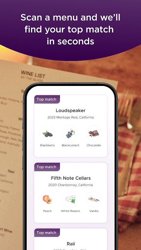 📸 Prenez une photo : scannez les étiquettes de vin, les menus de restaurant ou les allées d'épicerie pour obtenir des recommandations personnalisées en quelques secondes.