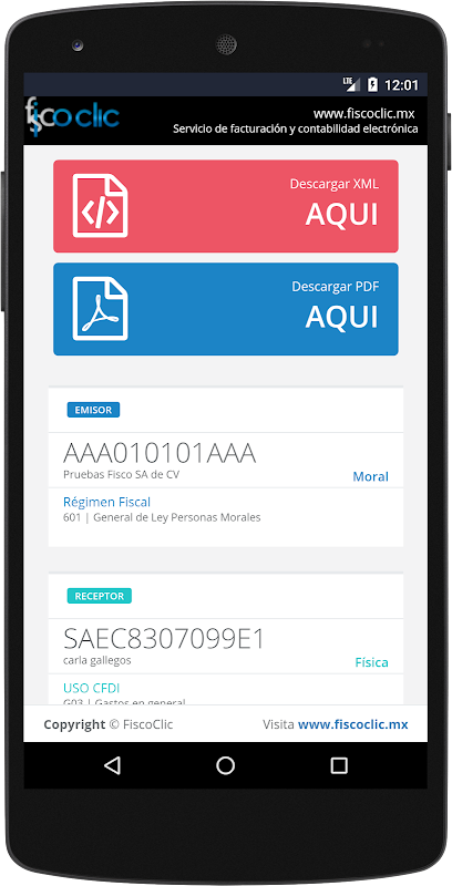 3. Descarga la App de FiscoClic Mobile e ingresa tu user y password que recibiste vía correo electrónico
