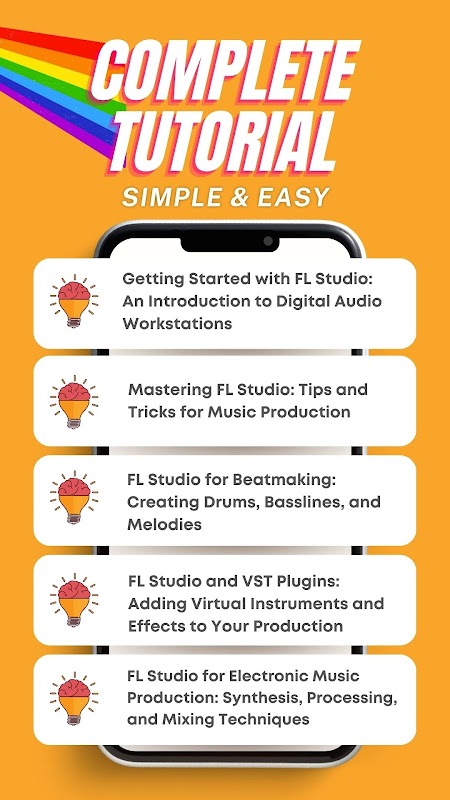 Cette application fournit un ensemble complet de didacticiels et de cours couvrant les bases de la production et de la composition musicales à l'aide du logiciel FL Studio. Vous apprendrez à utiliser le logiciel pour créer de la musique électronique, y compris la programmation de rythmes, la création de mélodies et la conception de sons.