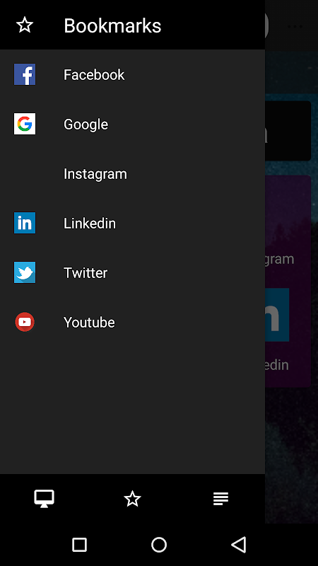 there is bookmarks for (facebook , instagram , youtube ,twitter ext...)