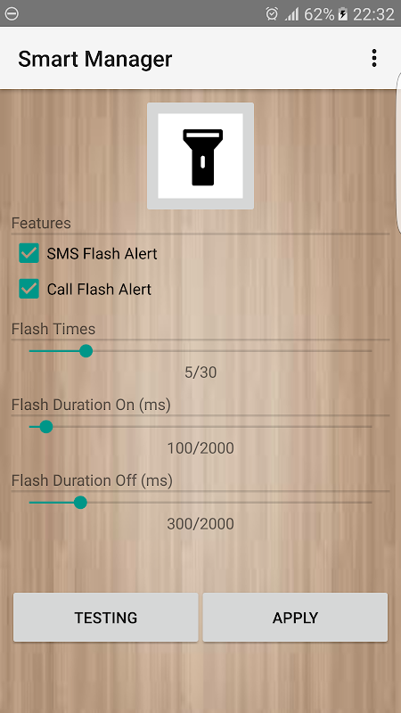This application will flashing flashlight to alert user when receive an incoming call or SMS