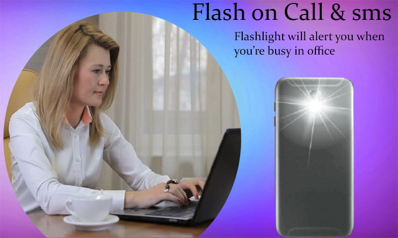 Flashlight Alerts, Flash On Call and SMS, Flash on call app will Flash alert on Incoming Call, on Incoming SMS, on Incoming Call without ringtones, on other test notifications like Facebook, Twitter, Whats App, etc.