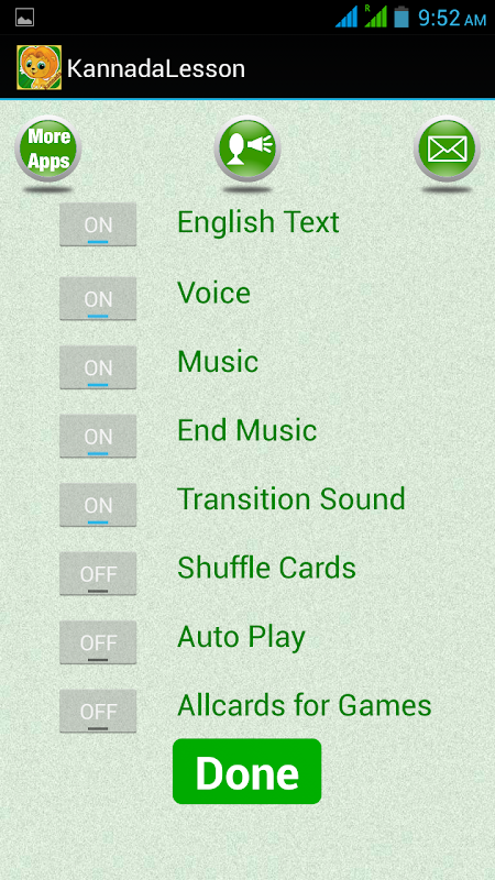 This app helps new language learner (kids to adults) to learn kannada words in easiest way, builds vocabulary and pronunciation of basic words in categories like Alphabet, Numbers, Body Parts, Birds, Animals, Vegetables, Fruits, Colors, Shapes, and Calendar. Key feature includes,