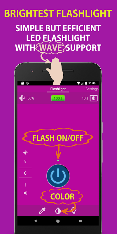 Cette Lampe de poche vous permet d'utiliser la LED de l'appareil photo pour transformer votre appareil en une torche puissante. Vous pouvez activer / désactiver en agitant la main pour réduire l'utilisation de la batterie.