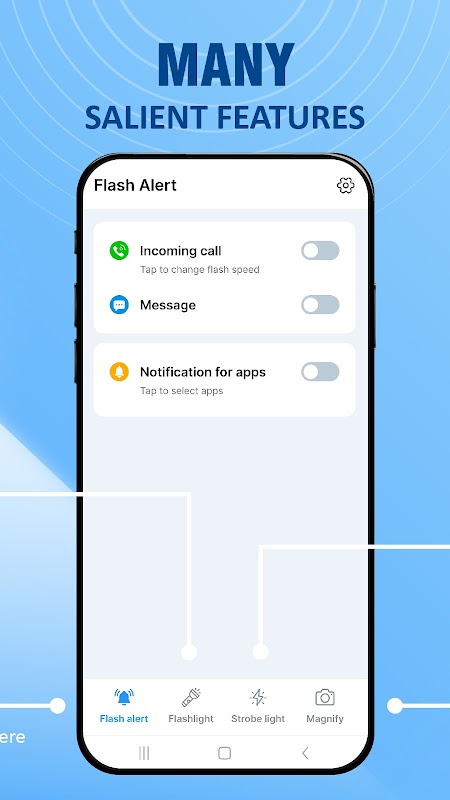 Plus qu'une simple notification flash, Flash Alert transforme également votre téléphone en lampe de poche. Grâce à la fonction lampe de poche intégrée, vous pouvez transporter une source de lumière portable dans votre poche à tout moment et en tout lieu. Pas besoin de transporter une lampe de poche séparée, utilisez votre téléphone et Flash Alert le transformera en une lampe de poche puissante et pratique.
