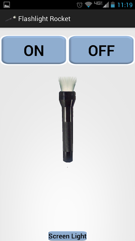This is a simple flashlight app. This app has two buttons to control the ON and OFF state. It lets you keep the flashlight ON even after the screen is locked, which some others do not. It has no time-out so the app will stay ON until it's turned OFF intentionally.