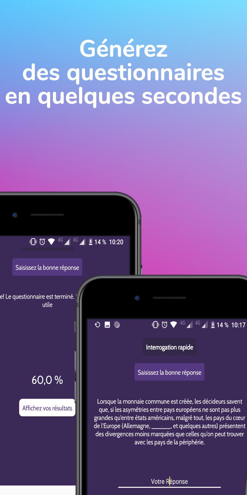 👉 Créez instantanément des questionnaires à partir de vos documents, photos et manuels scolaires en un seul clic.