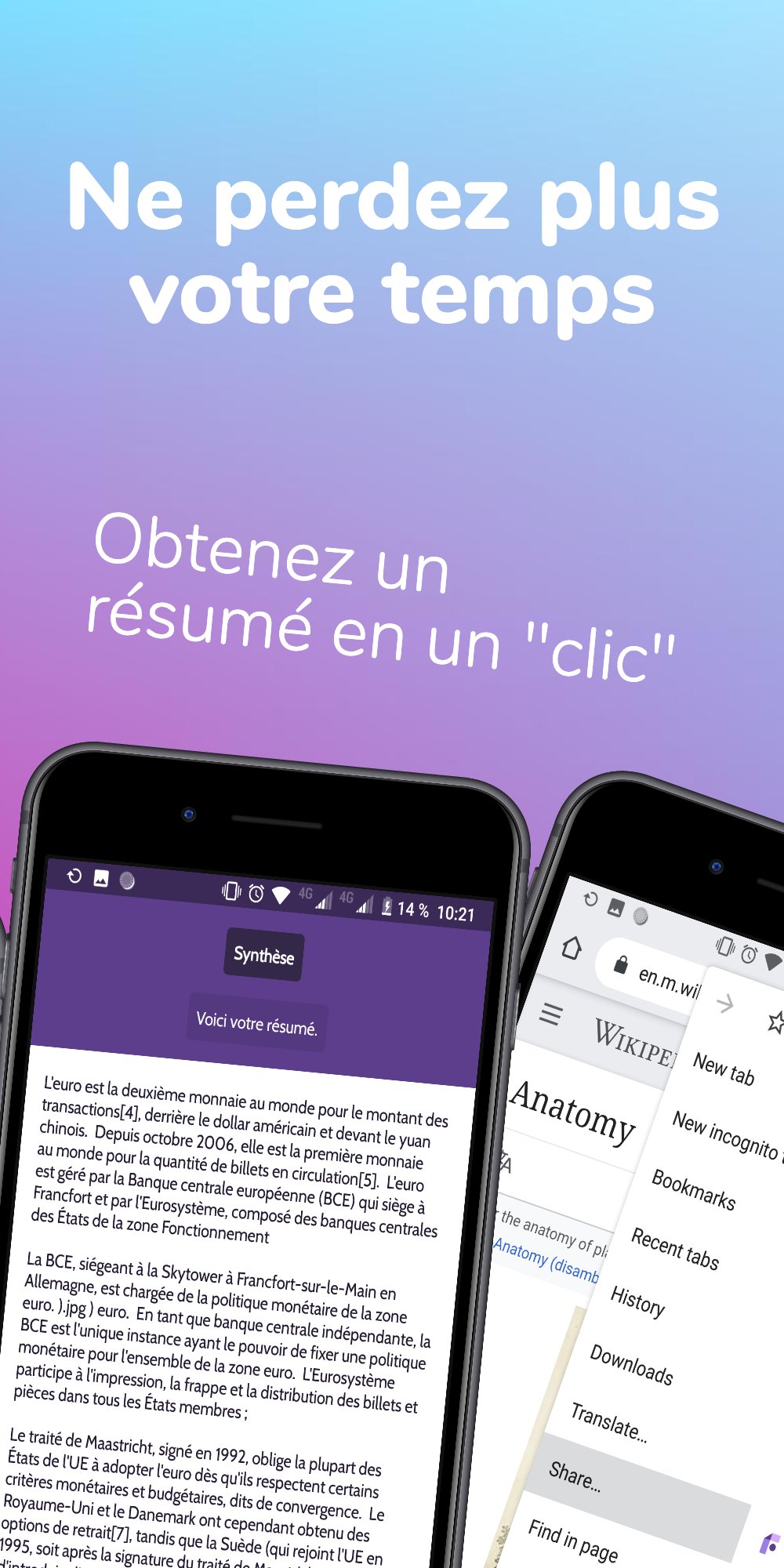 👉 Créez des résumés instantanément à partir de vos documents, manuels scolaires et même des articles de presse en un seul clic pour accélérer la lecture.