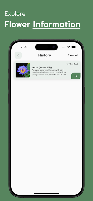 Flower Identifier est bien plus qu'une simple application : c'est votre botaniste numérique personnel pour découvrir et comprendre les fleurs du monde entier. Apprenez-en davantage sur leur beauté, leur origine et leur signification tout en constituant votre propre collection. Idéal pour les jardiniers, les étudiants, les voyageurs et tous les passionnés de fleurs.
