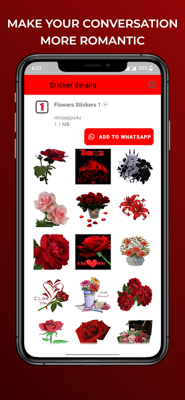 rendez votre conversation plus romantique avec des autocollants de fleurs pour WhatsApp.