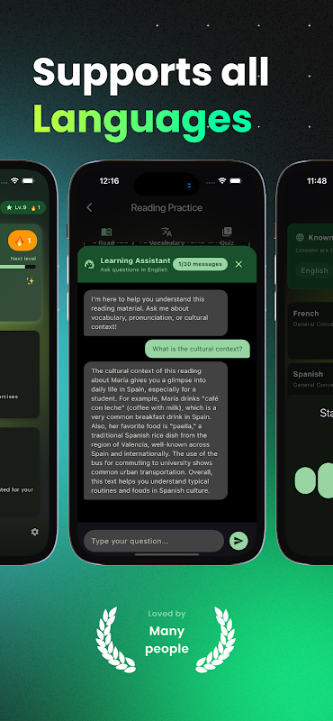 Apprenez l'espagnol, l'allemand, le français et plus encore. Maîtrisez plus de 30 langues en parlant.