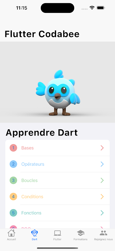 Apprenez à developper des applications pour iOS et Android avec Flutter et Dart en français.