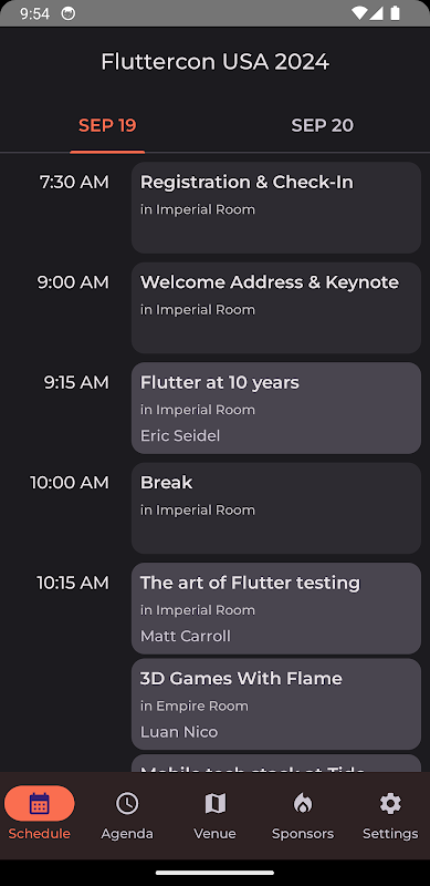 View the Fluttercon USA 2024 schedule, create your personal agenda and look up the venue map.