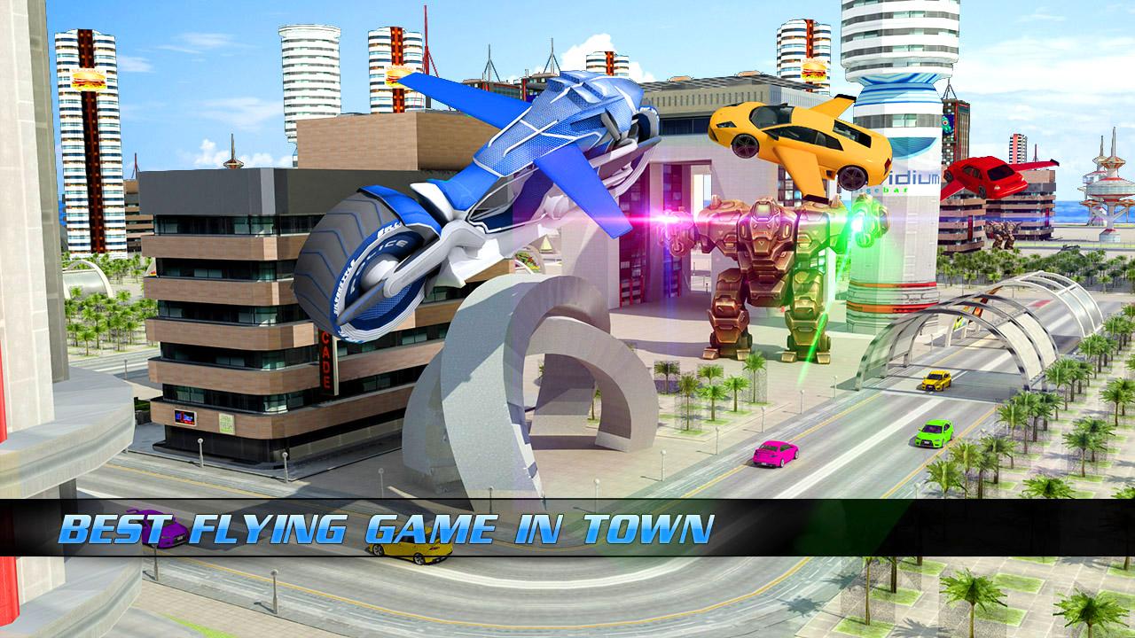Download the amazing Flying Bike Robot. In this crazy game you will be flying actually with a robot Bike like airplane flight simulator, and bike robot racing and robot war in the sky of Futuristic city which fell very adventurous and challenging.