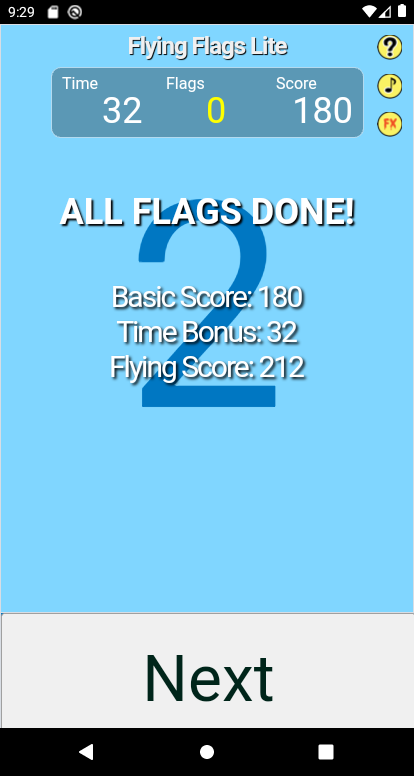 This game is easy to play, but there is a carefully designed learning process at its core. Through repetition, disambiguation and staged progression, you will recognize, and retain in your memory, the national flags of 50 countries. Tap on the flag that matches the country name while it is visible at the bottom of the screen. Avoid UFOs, as they take away points! So does getting a flag wrong!
