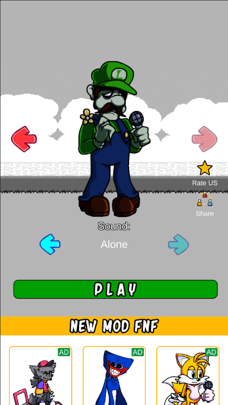 Que faire dans le jeu FNF Mario.EXE Mod Test Character? Vous devez marquer autant de points que possible. Comment faire? Avant de commencer le jeu, sélectionnez l'état du héros et la musique que vous préférez, puis cliquez sur jouer. Après avoir démarré le jeu, cliquez sur les flèches sur l'écran de votre appareil et gagnez des points. Si vous avez marqué 800 points, c'est un bon résultat du jeu. Si vous avez réussi à marquer plus de 1000 points, vous êtes doué pour jouer au test de mod FNF Mario.EXE.