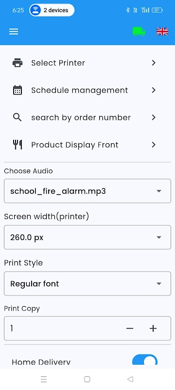 Cela vous facilite la vie dans la gestion du traitement de vos commandes. L'application vous informera d'une nouvelle commande et vous pourrez définir le délai de livraison. En appuyant simplement sur le bouton, vous pouvez imprimer le reçu et envoyer le délai de livraison au client. Ainsi, votre client sera toujours informé ainsi que de la livraison de nourriture. Vous pouvez donc établir la confiance.