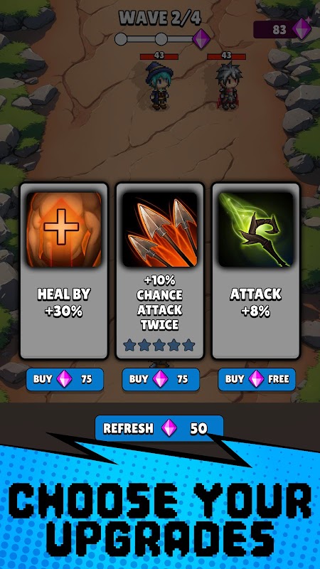 Améliorez votre héros et votre équipement en alternant entre des batailles intenses et un gameplay stratégique d'association de gemmes. Chaque ennemi vaincu alimente votre prochain tour de puzzle, créant une boucle exaltante d'action, de stratégie et de progression.