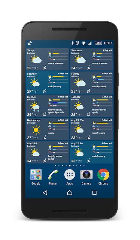 Végre egy olyan alkalmazás, ami nem csak a következő napok időjárását mutatja, hanem pontosan azokat az időpontokat és helyszíneket, amelyek számodra fontosak. Végy fel ForeTracker widget-eket a kezdőképernyődre példádul a hétvégi kirándulásodhoz és így mindig látni fogod, hogy milyen időjárásra érdemes felkészülnöd. Azonnal értesülhetsz az előrejelzés megváltozásáról, így időben dönthetsz programod más időpontra vagy helyszínre történő mozgatásáról. Egymás mellé rakhatod az alternatív időpontokat és helyszíneket, így könnyebben hozhatsz jó döntést. Nem szükséges több előrejelző oldalt folyamatosan böngészned, megteszi helyetted mindezt a ForeTracker app, hiszen képes egyszerre több időjárás szolgáltató adatainak követésére mindezt úgy, hogy közben csak minimális adatforgalmat generál.