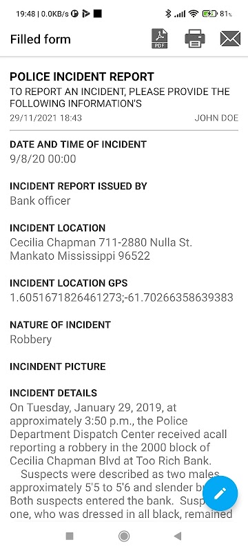 - Form fields such as: images/photos with annotations, signature, gps coordinates and all common fields