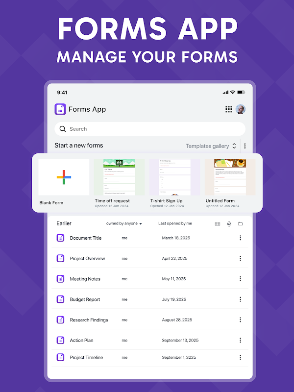 Modèles professionnels et personnalisation : Gagnez du temps grâce à nos modèles de formulaires prédéfinis. Nous agissons comme votre créateur de modèles de formulaires personnel, vous permettant de personnaliser les mises en page pour tous les secteurs d'activité. Que vous ayez besoin de modèles pour l'éducation, le commerce ou les enquêtes de satisfaction, nos modèles sont prêts à l'emploi. Vous pouvez également créer vos propres modèles en enregistrant vos créations personnalisées pour une utilisation ultérieure. Besoin de modifications en déplacement ? Notre éditeur de formulaires avancé vous offre un contrôle total sur les questions et les sections. Gérez facilement tous vos formulaires directement depuis votre téléphone, tout en assurant la synchronisation parfaite de vos projets Google Forms. L'éditeur garantit un rendu professionnel de vos formulaires sur tous les appareils.