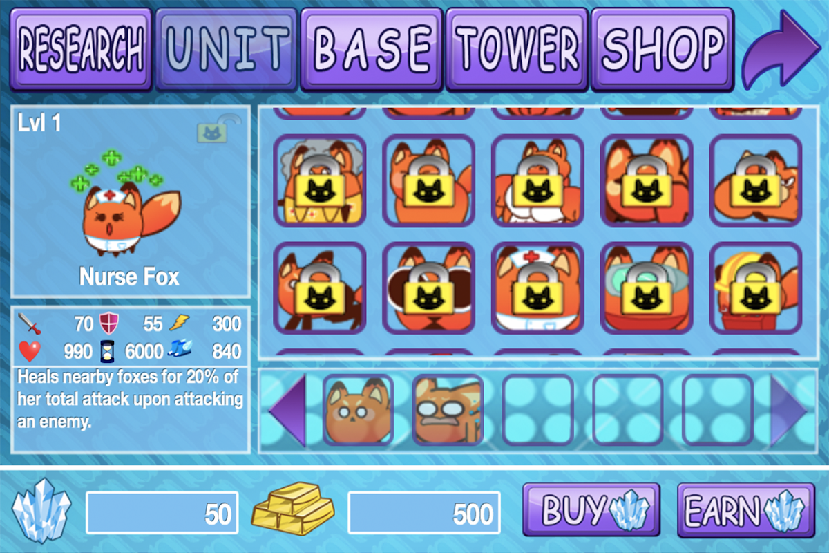 The first of its kind! Fox Wars is a RTS (Real Time Strategy) game. Order your units correctly to defeat your opponent! Build and upgrade towers to aid you in your battles! Level up and unlock new units as you progress! Create global buffs and call in Air Strikes to dominate the match! PVP coming soon!