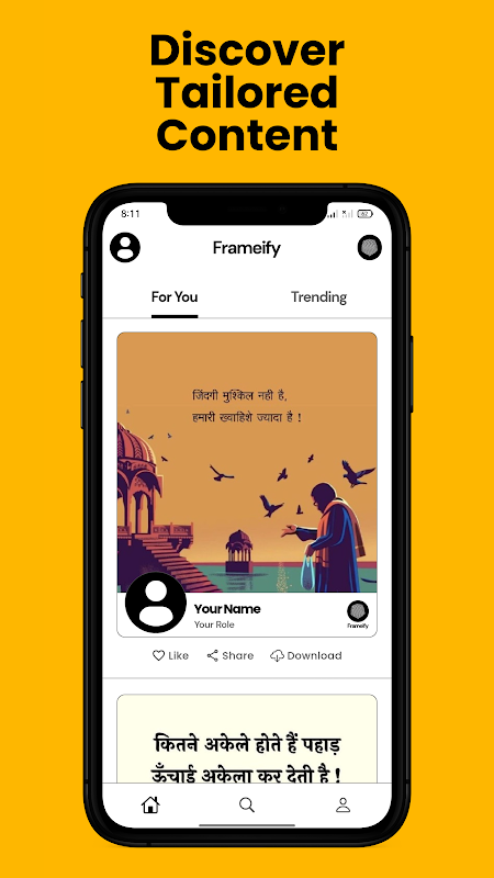 Pour tout le monde, Frameify est là ! 🌟 अपनी तस्वीरों को डाउनलोड करें और अपने प्रोफ़ ाइल फ़ोटो, नाम और पद के साथ खूबसूरत फ्रेम में सजा एं। ✨ #Frameify #आत्मपरिचय #क्रिएटिव