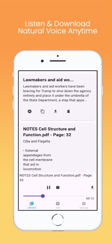 • Écoutez et téléchargez les voix naturelles générées pendant la lecture de fichiers PDF.