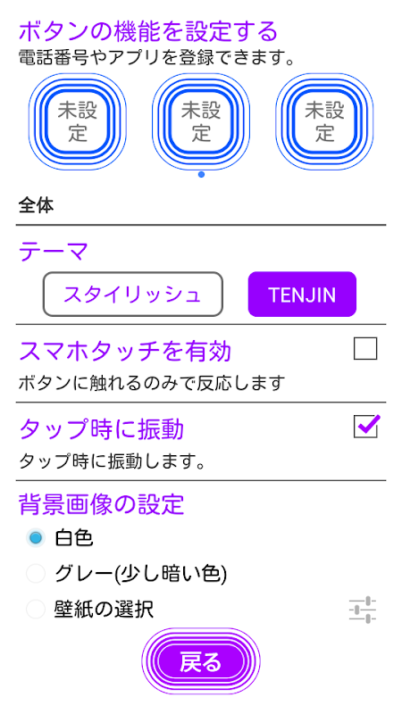 ・ミスタッチを避けるため、長押しと振動によりボタンがしっかり反応する機能。