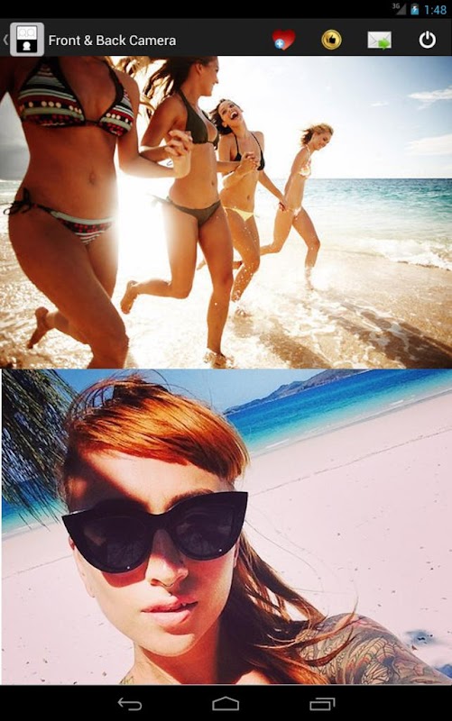 By using sequentially both the front and back cameras from your phone, this application will turn your phone into an amazing camera, allowing you to appear in the photo you are taking! Both pictures will be combined to produce an awesome image that will capture the pic and photographer in the same frame.