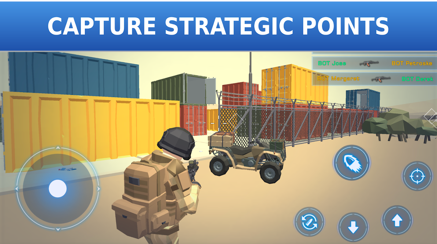 La victoire repose sur la stratégie, le positionnement et le travail d'équipe. Adaptez-vous à toutes les situations : utilisez des véhicules pour prendre l'ennemi à revers, coordonnez vos tirs croisés avec vos alliés ou tenez vos objectifs sous pression. Dans ce simulateur de guerre réaliste, chaque rôle compte où précision et communication sont la clé de la victoire.