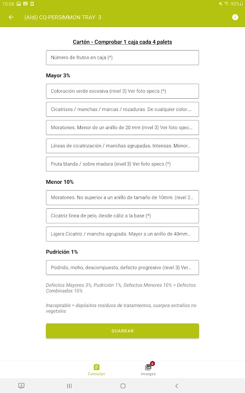 Dans le processus de contrôle de la qualité et de vérification de la production et du traitement du fruit, une image peut être associée à chaque contrôle.