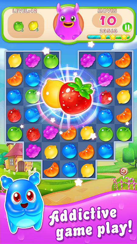 Faites exploser des bonbons sucrés et des fruits juteux, jouez avec de mignons monstres en gelée !