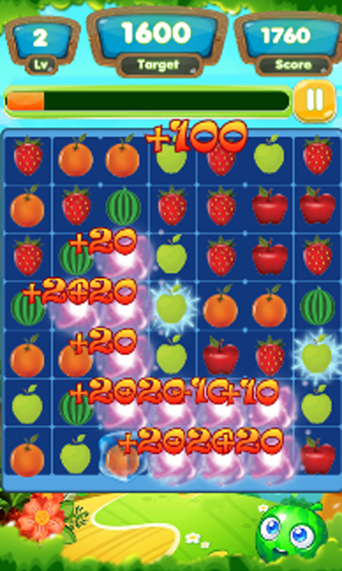 √ Connect 3 or more same fruit type to score points.
